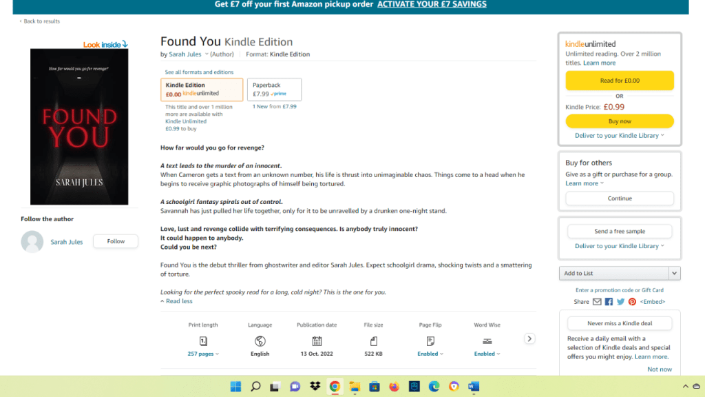 My book is finally live! Full disclosure, it went live on the 13th Oct, but things have been manic. Now that Amazon has finally linked the paperback and eBook versions of Found You together, it is so much easier for me to share the link with you!