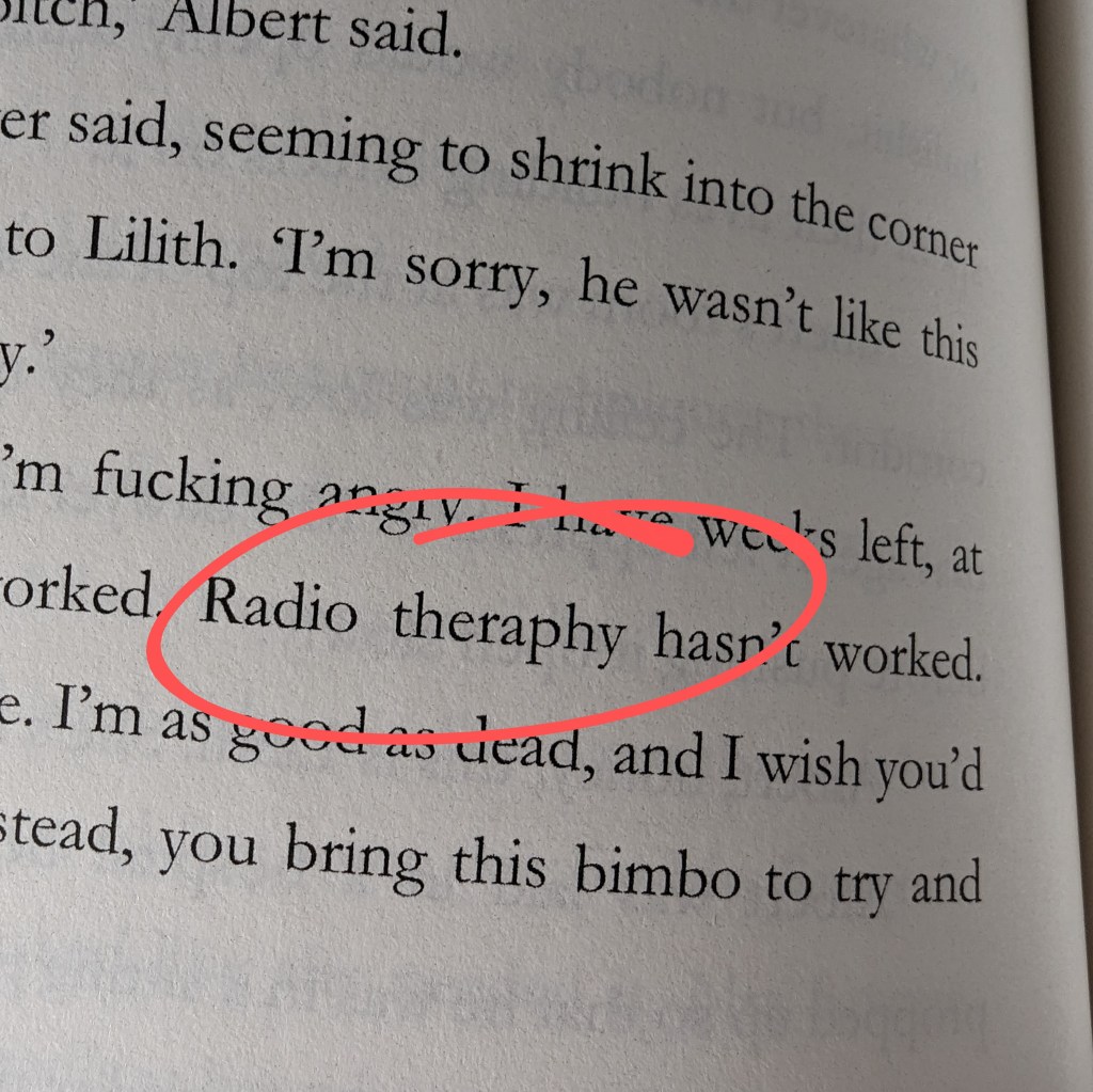 I had some fantastic feedback from an ARC reader about a sentence they found confusing. The section originally read, ‘Chemo hadn’t worked. Radio hadn’t worked.’ The ARC reader said that when she read ‘radio’ she thought of an actual radio, rather than what I’d intended – which was ‘radio therapy’. As you can see, I actioned her advice. I typed out the word ‘therapy’ and thought ‘job done’. The only thing was that I didn’t check the word I’d typed. Instead of ‘therapy’, I wrote ‘theraphy’.