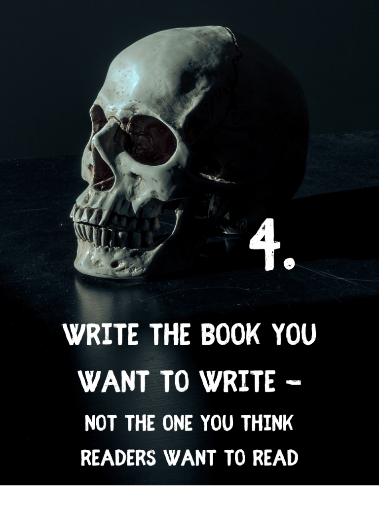 4. Write the book you want to write, not the one you think readers want to read. The only thing worse than writing a book you don’t want to write, is reading a book the author didn’t want to write. You can tell when an author is truly invested in their project.