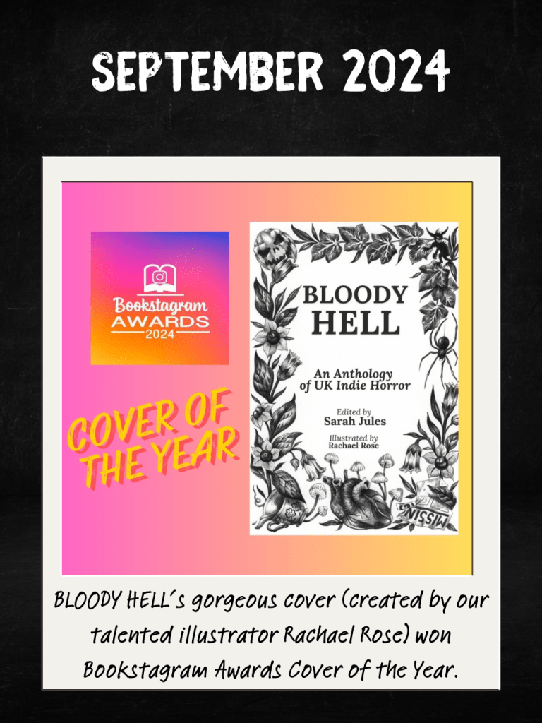 In September, ‘BLOODY HELL’ won cover of the year in the Bookstagram Awards – it was very well deserved, Rachael designed a gorgeous cover. I can’t take any credit for that at all.