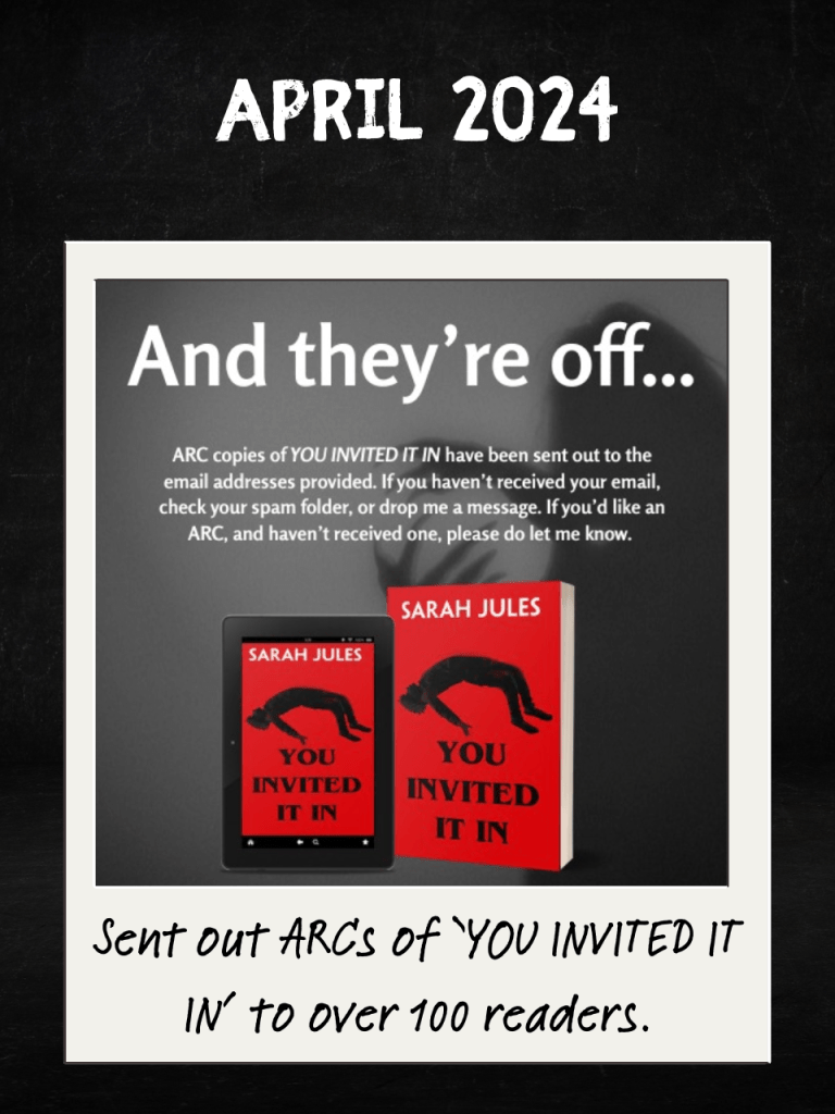 I sent off advanced reader copies (ARCs) of ‘You Invited It In’ to over 100 readers in April. I’ve written a few blog posts about how I launched ‘You Invited It In’. I’d learned a lot from previous book launches, and also from fellow authors. I think the way I launched YIII made a huge difference to sales and visibility.