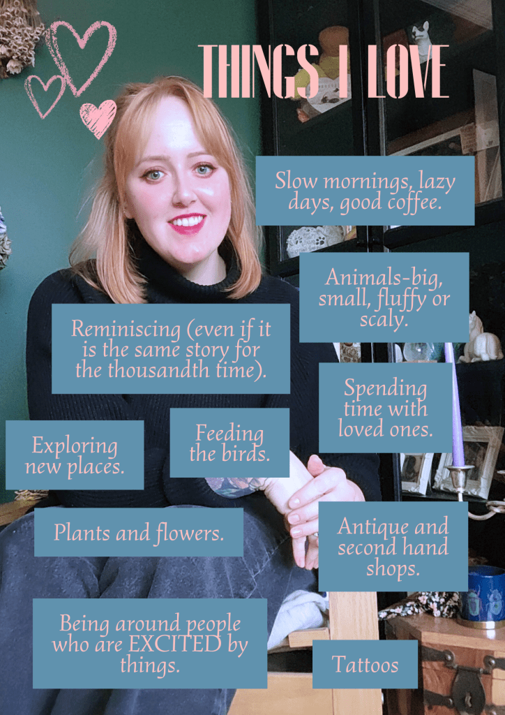 In honour of the poor, sad, past version of me sobbing on a therapist’s sofa – here are the things I love about myself, about my life, and just in general.
